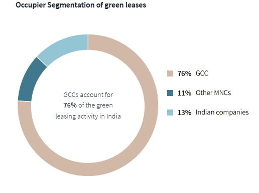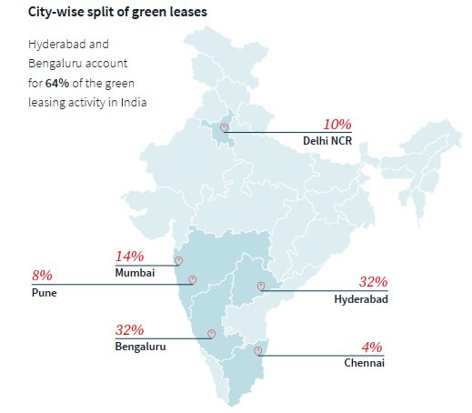 Hyderabad and Bengaluru account for 64% of the green leasing activity in India.